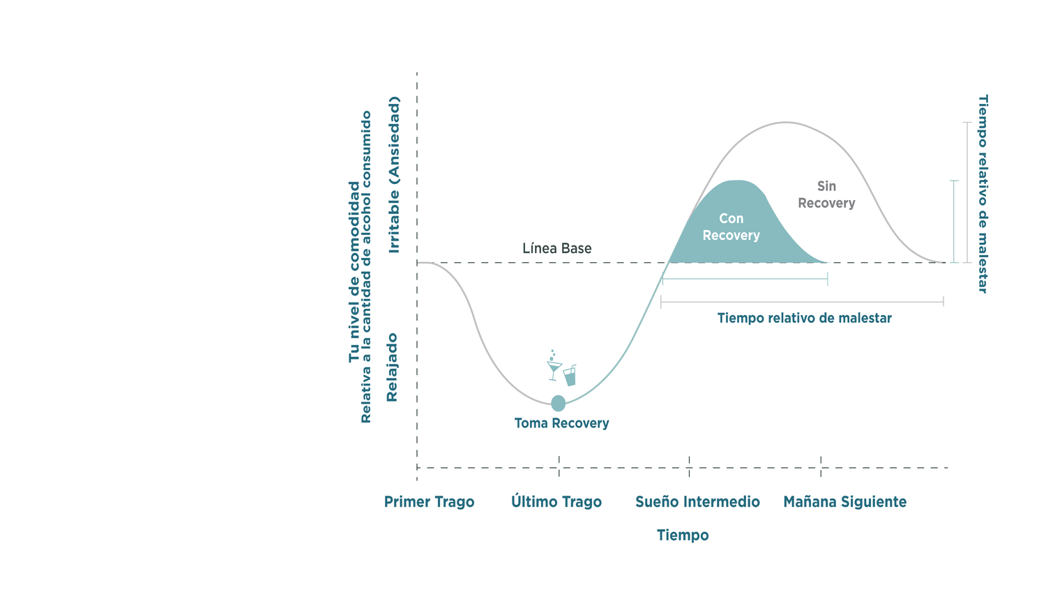 Per metabolizzare l'alcol, il corpo deve prima convertirlo in acetaldeide (che è 20 volte più tossica dell'alcol) prima che possa essere finalmente eliminato dal sistema. La formula a base di DHM di Recovery riduce la quantità e la durata del tempo di esposizione all'acetaldeide, aiutandoti a metabolizzare l'alcol in modo più efficiente.